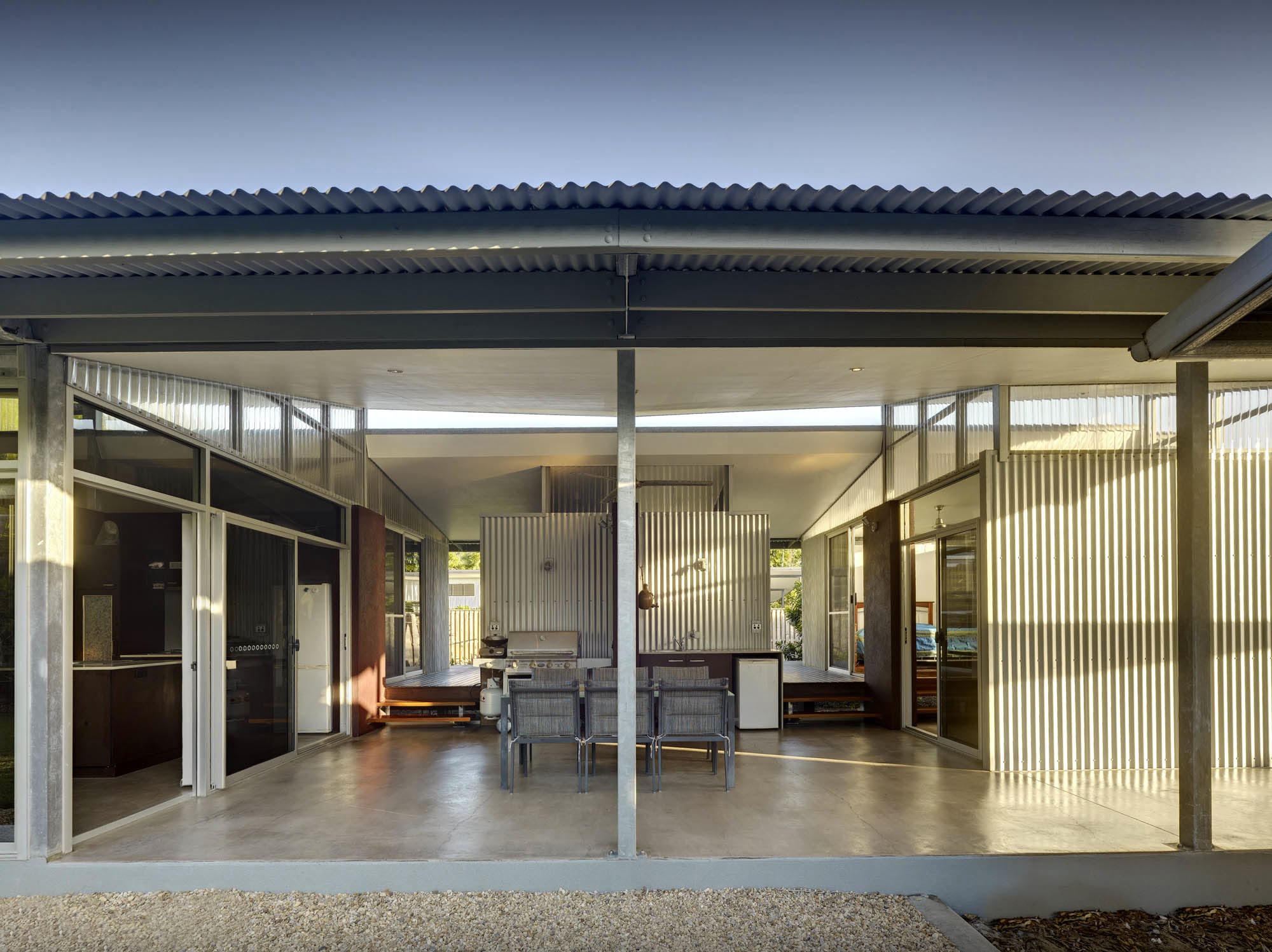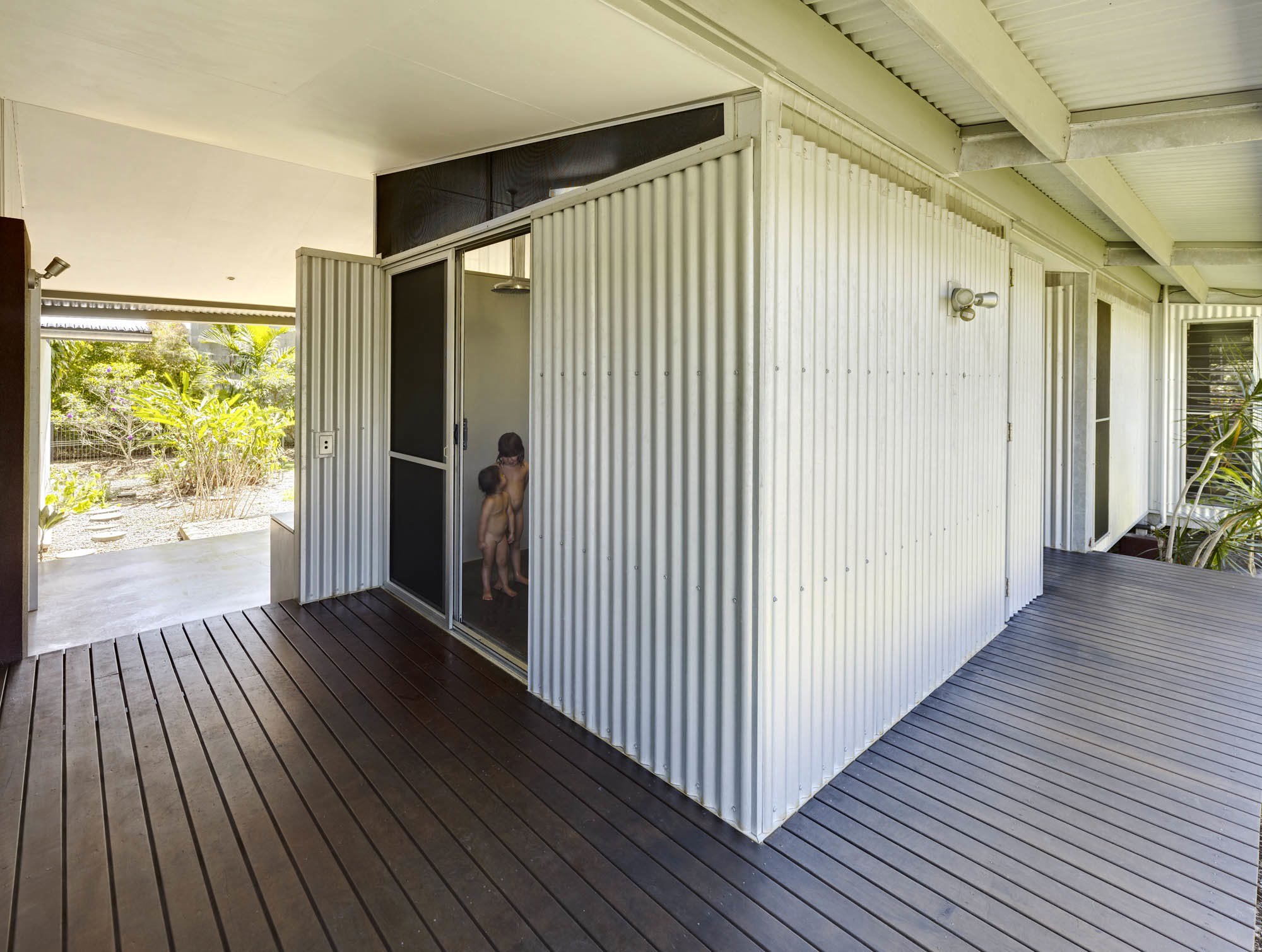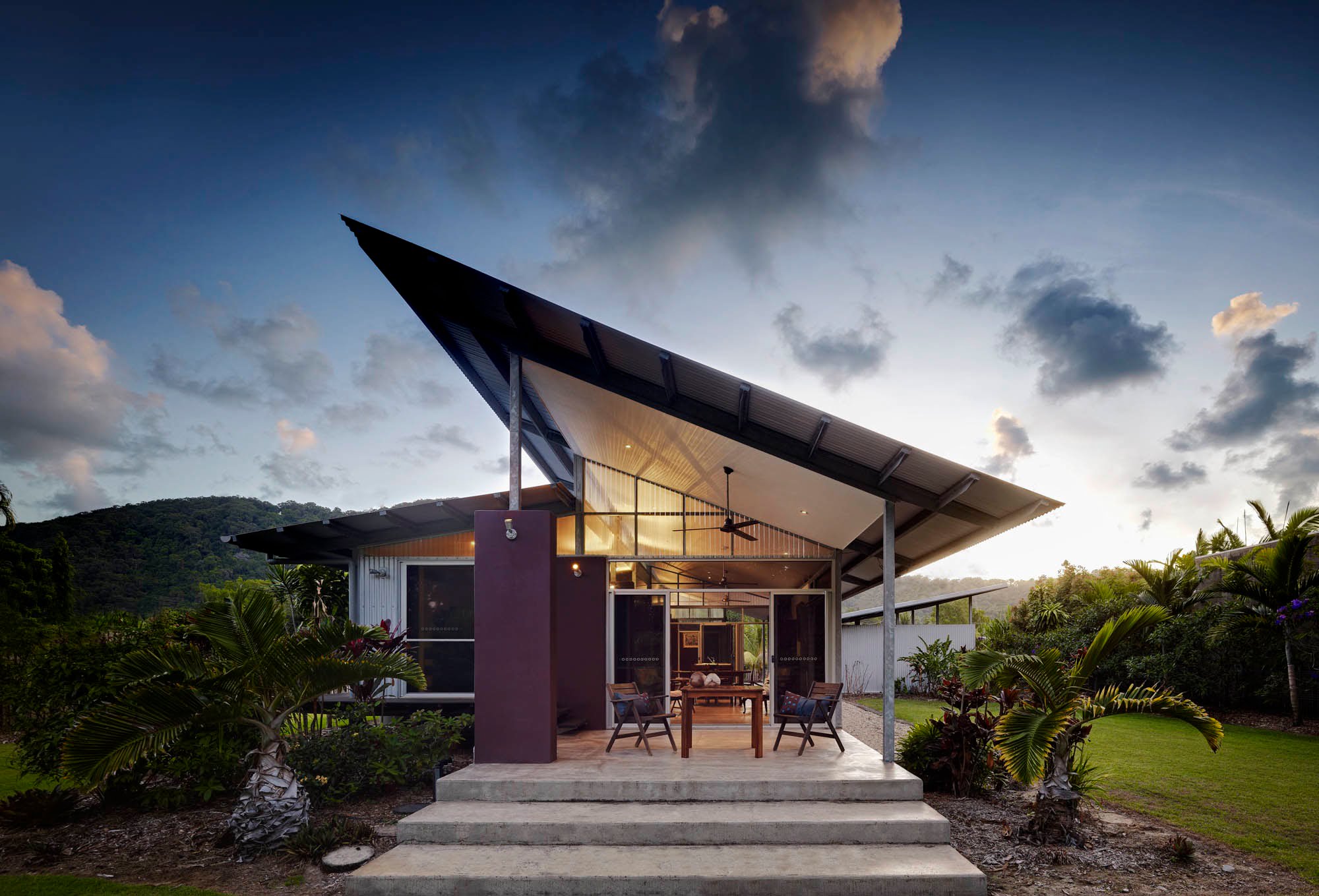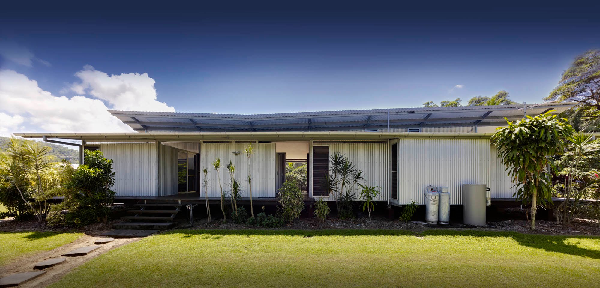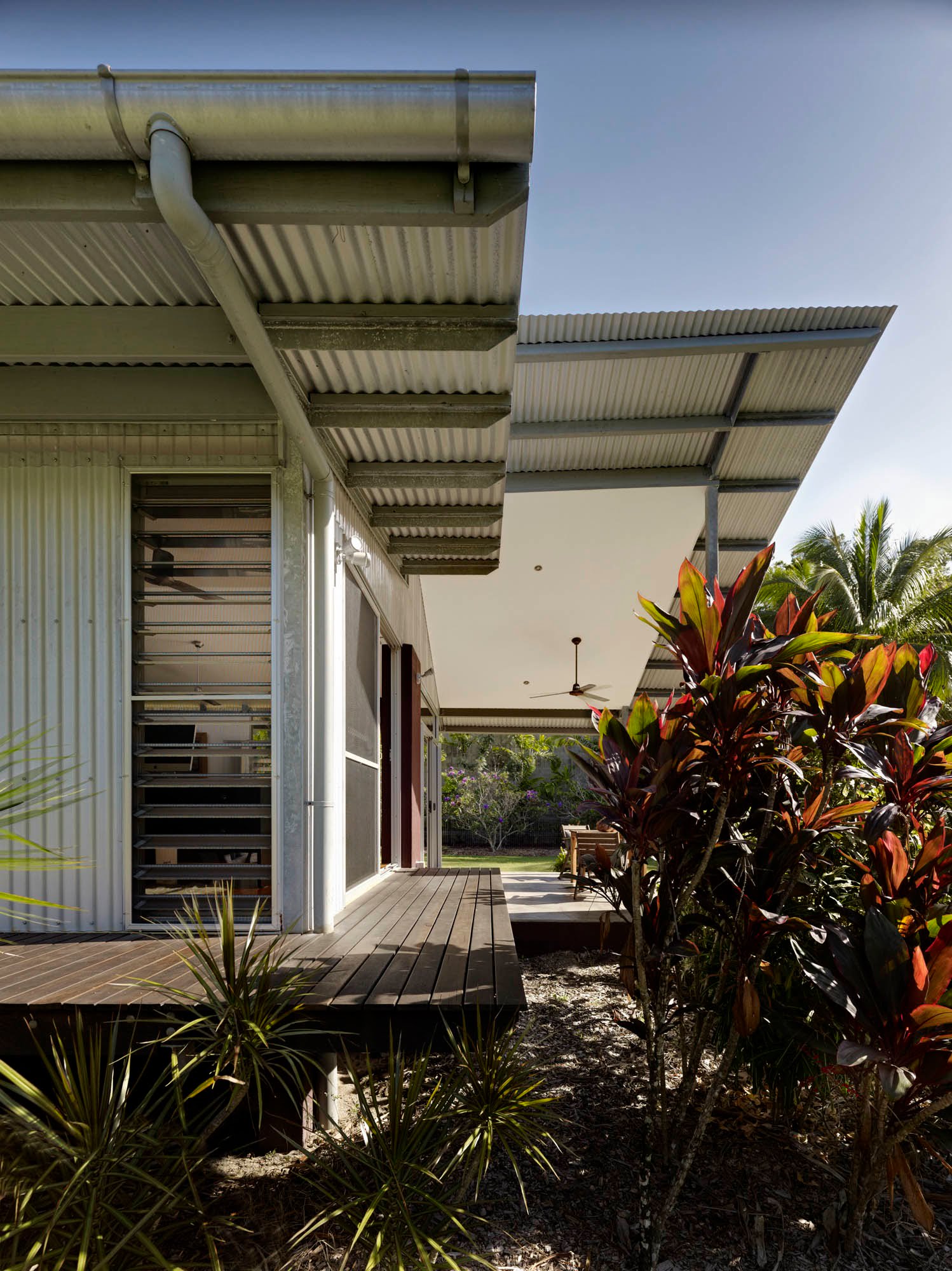 The clients moved to this tropical location just south of the Daintree River after living in caravan for 10 years which informed their desire for a simple, unobtrusive dwelling that embraced the tropics and outdoor living. A raised concrete plinth extended the ground plane for the living functions and flanking this on a raised lightweight platform are the bedrooms and wet areas. The split level introduced opportunities for ventilation and the inter-connection of spaces without conventional divisions.